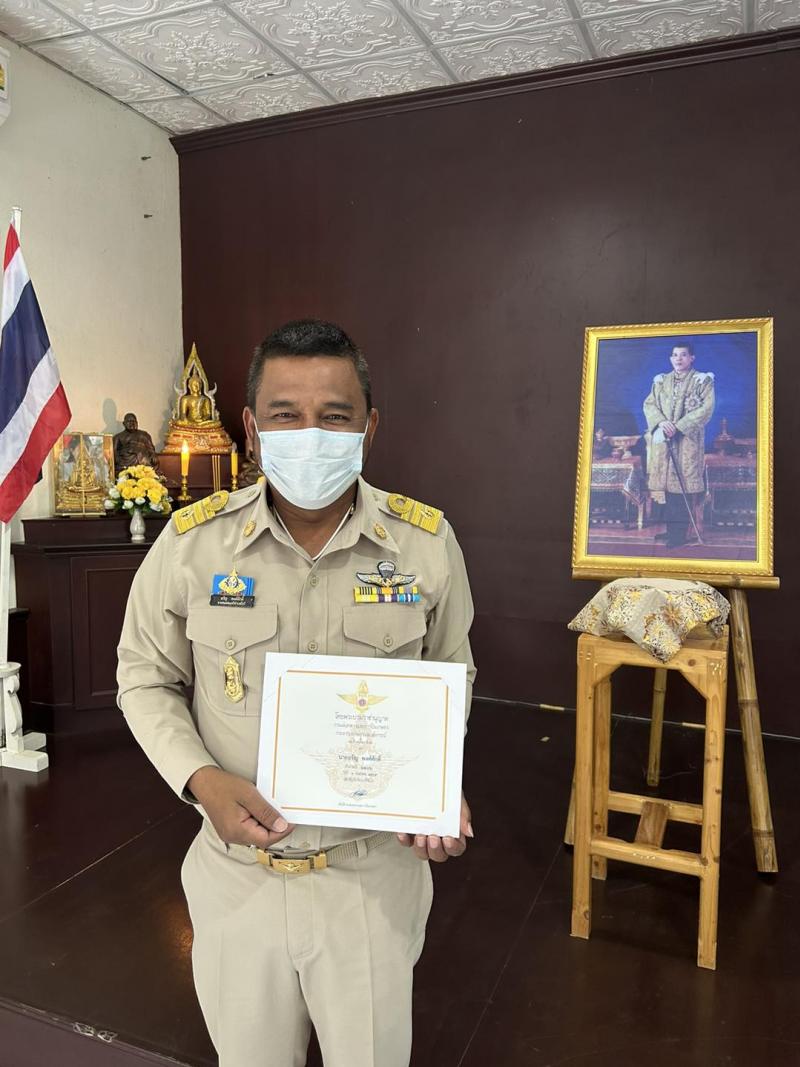 นายอรัญ พงศ์ศักดิ์ นายกเทศมนตรีตำบลปัถวี ได้รับปีกฝนหลวงพิเศษ