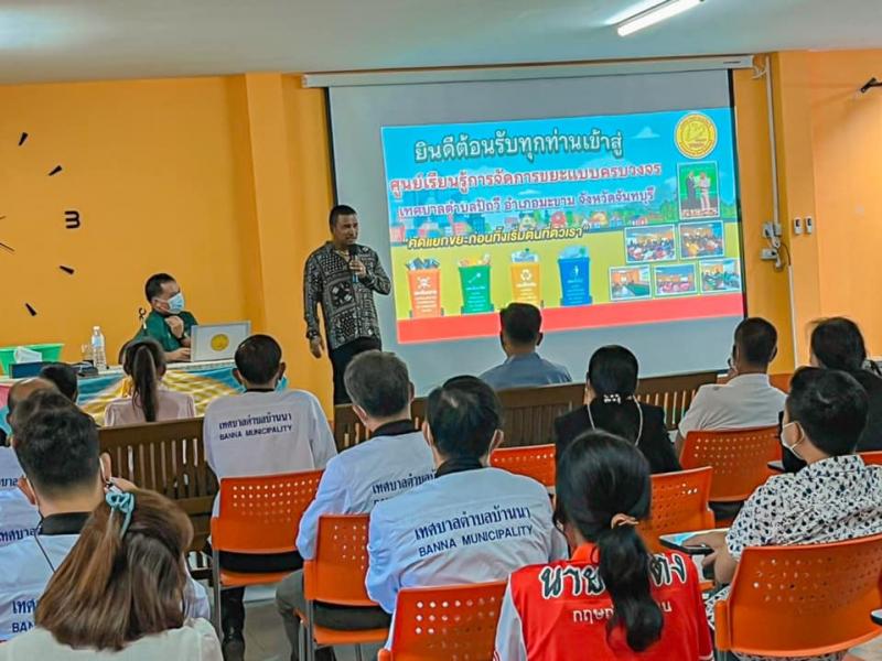 รายละเอียด : วันที่ 20 กรกฎาคม 2565เวลา 13.00 น. นายอรัญ พงศ์ศักดิ์ นายกเทศมนตรีตำบลปัถวี พร้อมด้วยคณะผู้บริหาร สมาชิกสภา กำนัน -ผู้ใหญ่บ้าน กองสาธารณสุขและสิ่งแวดล้อม เทศบาลตำบลปัถวีต้อนรับคณะดูงานจากสมาคมสันนิบาต จ.นครนายก ในโครงการฝึกอบรมสัมนาด้านการบริหารจัดการองค์กรเทศบาลของสันนิบาตเทศบาลจังหวัดนครนายกประจำปี 2565 โดยมี ดร.เกียรติภูมิ จันเต ผู้อำนวยการกองสาธารณสุขและสิ่งแวดล้อม เป็นวิทยากรบรรยายให้ความรู้ความเข้าใจในโครงการ ณ ศูนย์การเรียนรู้ การจัดการขยะ แบบครบวงจร เทศบาลตำบลปัถวี