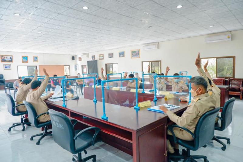 โดยการประชุมมีการเว้นระยะห่าง ตรวจวัดอุณภูมิ ล้างมือด้วยเจลแอลกอฮอลล์ ตามมาตรการป้องกันโรค covid-19