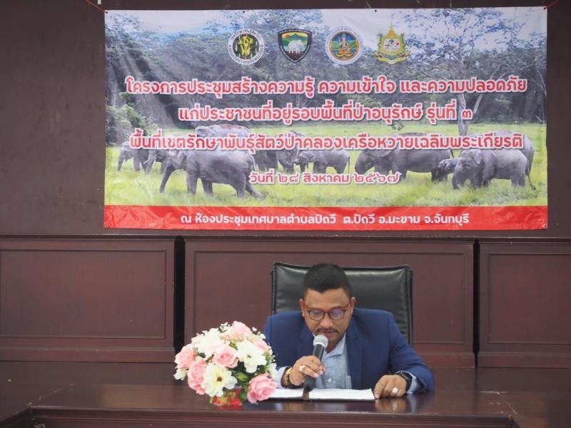 นายอรัญ พงศ์ศักดิ์ นายกเทศมนตรีตำบลปัถวี เป็นประธานในการเปิดโครงการประชุมสร้างความรู้ ความเข้าใจ และความปลอดภัยแก่ประชาชนที่อยู่รอบพื้นที่ป่าอนุรักษ์ รุ่นที่ 3