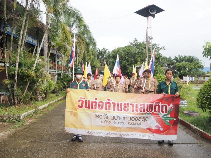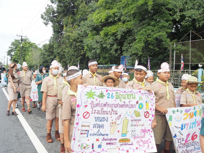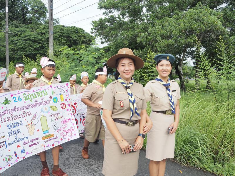 เข้าร่วมกิจกรรมเดินรณรงค์เนื่องในวันต่อต้านยาเสพติด ตามกรอบแนวคิดและคำขวัญ รวมพลังไทย สร้างครอบครัว ชุมชนอุ่นใจ พ้นภัยยาเสพติด เฉลิมพระเกียรติ ๗๒ พรรษา มหาราชา