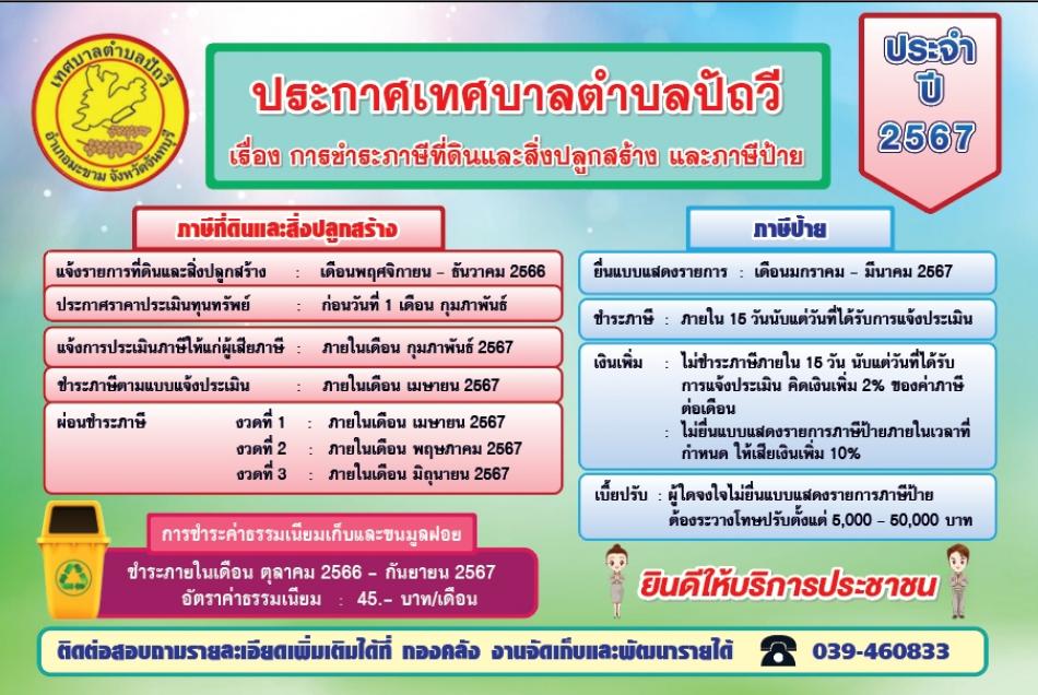 ประกาศเรื่องการชำระภาษีที่ดินและสิ่งปลูกสร้าง และภาษีป้าย [23 พฤศจิกายน 2566]
