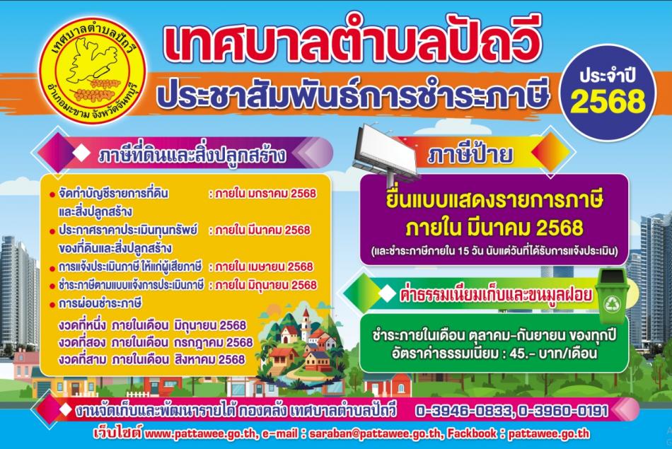 ประชาสัมพันธ์การชำระภาษีประจำปี 2568 [14 ธันวาคม 2567]