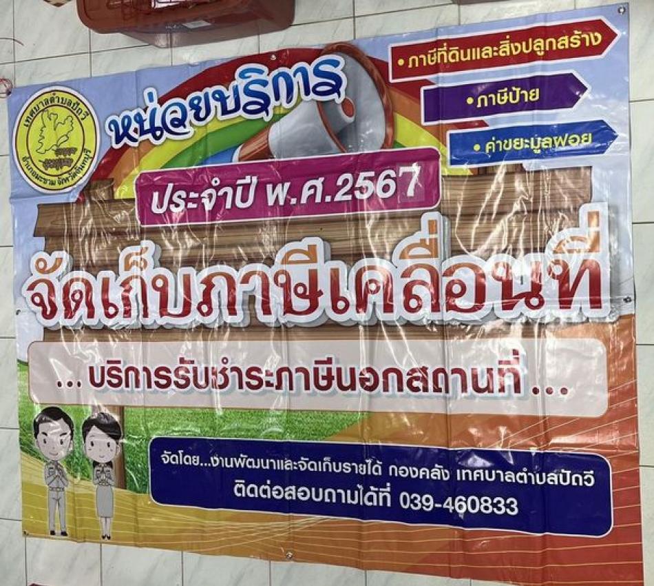ประกาศเทศบาลตำบลปัถวี เรื่องโครงการหน่วยบริการจัดเก็บภาษีเคลื่อนที่ ประจำปี 2567 [13 กรกฎาคม 2567]
