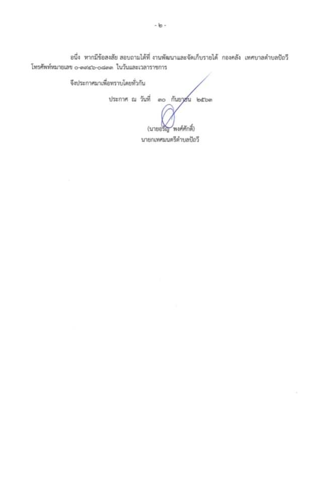 ประกาศเทศบาลตำบลปัถวี เรื่อง ขอขยายเวลาชำระภาษีที่ดิน และสิ่งปลูกสร้าง และ การงดเบี้ยปรับ/เงินเพิ่ม ตามพระราชบัญญัติภาษีที่ดินและสิ่งปลูกสร้าง พ.ศ.2562