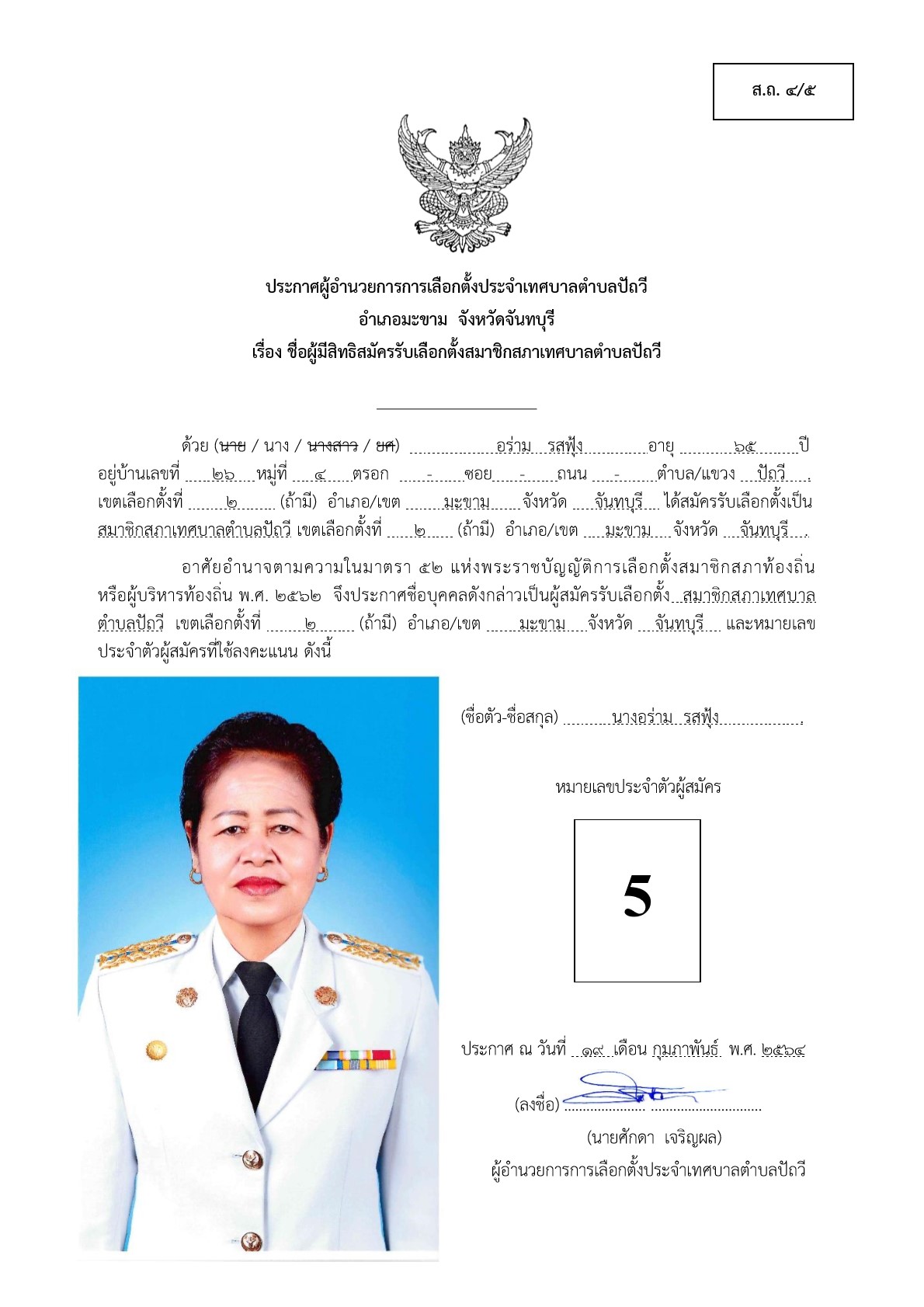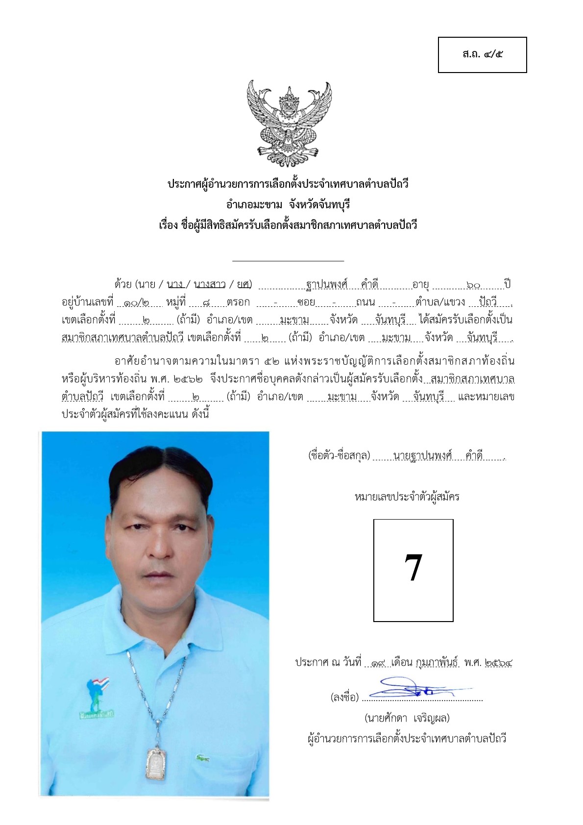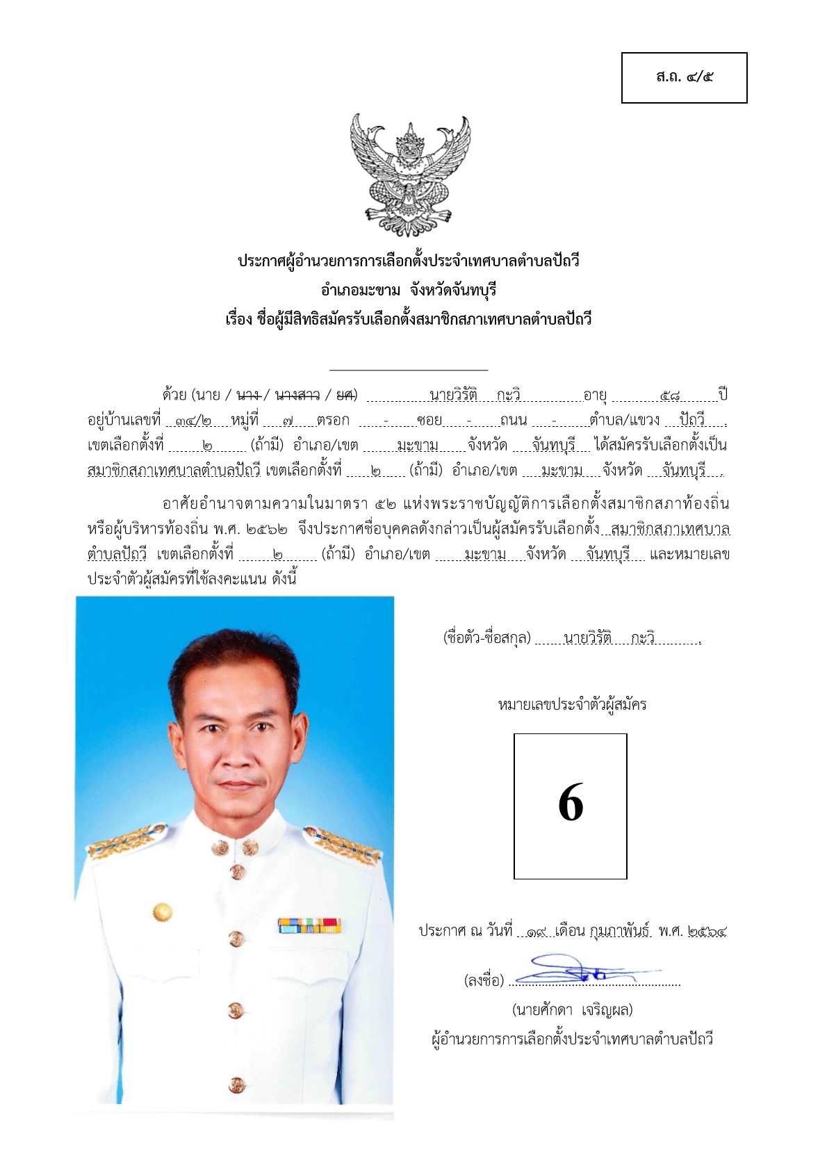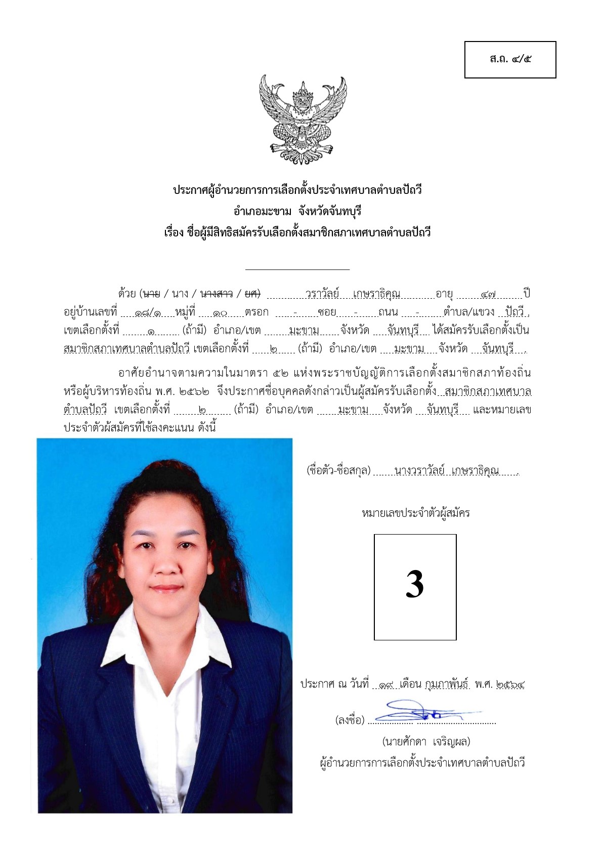 บัญชีรายชื่อผู้สมัครรับเลือกตั้งสมาชิกสภาเทศบาลตำบลปัถวี เขตที่2 ที่ได้รับสมัครรับเลือกตั้งและไม่ได้รับสมัครรับเลือกตั้ง