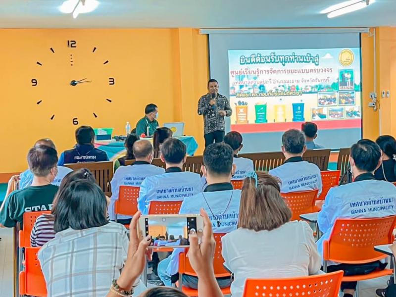 รายละเอียด : วันที่ 20 กรกฎาคม 2565เวลา 13.00 น. นายอรัญ พงศ์ศักดิ์ นายกเทศมนตรีตำบลปัถวี พร้อมด้วยคณะผู้บริหาร สมาชิกสภา กำนัน -ผู้ใหญ่บ้าน กองสาธารณสุขและสิ่งแวดล้อม เทศบาลตำบลปัถวีต้อนรับคณะดูงานจากสมาคมสันนิบาต จ.นครนายก ในโครงการฝึกอบรมสัมนาด้านการบริหารจัดการองค์กรเทศบาลของสันนิบาตเทศบาลจังหวัดนครนายกประจำปี 2565 โดยมี ดร.เกียรติภูมิ จันเต ผู้อำนวยการกองสาธารณสุขและสิ่งแวดล้อม เป็นวิทยากรบรรยายให้ความรู้ความเข้าใจในโครงการ ณ ศูนย์การเรียนรู้ การจัดการขยะ แบบครบวงจร เทศบาลตำบลปัถวี
