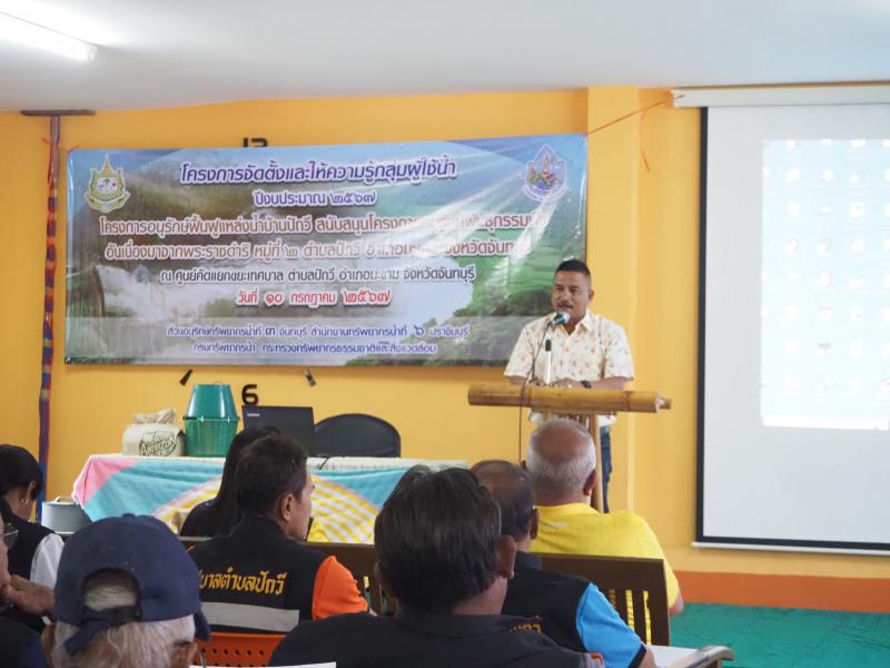 รายละเอียด : วันที่ 10 กรกฎาคม 2567 เวลา 8.00 น. นำโดยนายอรัญ พงศ์ศักดิ์ นายกเทศมนตรีตำบลปัถวี พร้อมด้วยคณะผู้บริหาร สมาชิกสภาเทศบาลตำบลปัถวี กำนันและผู้ใหญ่บ้าน ได้เข้าร่วมโครงการจัดตั้งและให้ความรู้กลุ่มผู้ใช้น้ำโครงการอนุรักษ์ฟื้นฟูแหล่งน้ำบ้านปัถวี โดยกรมทรัพยากรน้ำที่ 6 สนับสนุนโครงการอนุรักษ์พันธุกรรมพืชอันเนื่องมาจากพระราชดำริ หมู่ที่ 2 ตำบลปัถวี อำเภอมะขาม จังหวัดจันทบุรี โดยมีวัตถุประสงค์เพื่อจัดตั้งกลุ่มผู้ใช้น้ำในพื้นที่ โดยให้ประชาชนและผู้มีส่วนได้ส่วนเสีย ได้เข้ามามีส่วนร่วมการจัดสรรน้ำอย่างเพียงพอและมีความสมดุลอย่างยั่งยืน ณ ศูนย์คัดแยกขยะเทศบาลตำบลปัถ