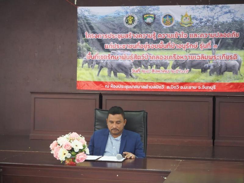 นายอรัญ พงศ์ศักดิ์ นายกเทศมนตรีตำบลปัถวี เป็นประธานในการเปิดโครงการประชุมสร้างความรู้ ความเข้าใจ และความปลอดภัยแก่ประชาชนที่อยู่รอบพื้นที่ป่าอนุรักษ์ รุ่นที่ 3