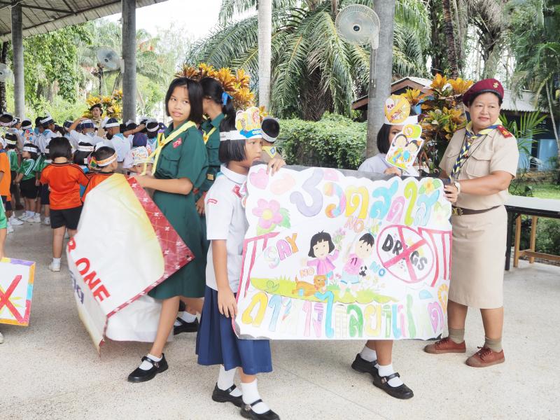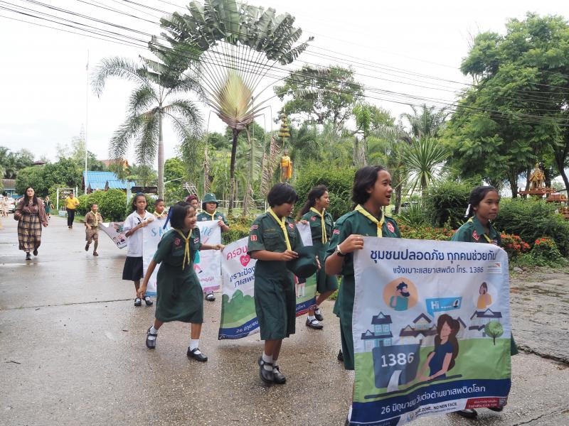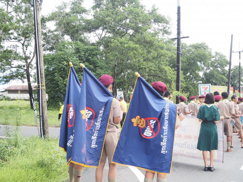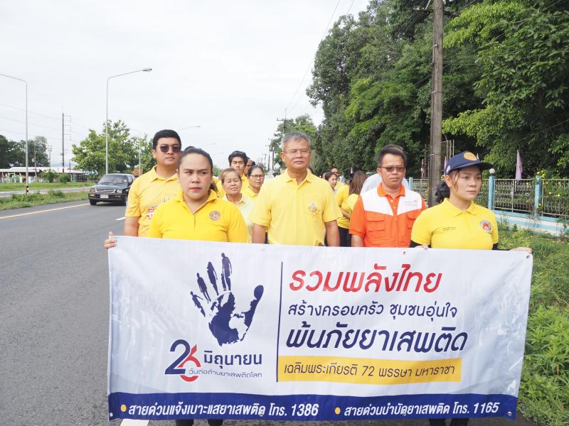 เข้าร่วมกิจกรรมเดินรณรงค์เนื่องในวันต่อต้านยาเสพติด ตามกรอบแนวคิดและคำขวัญ รวมพลังไทย สร้างครอบครัว ชุมชนอุ่นใจ พ้นภัยยาเสพติด เฉลิมพระเกียรติ ๗๒ พรรษา มหาราชา