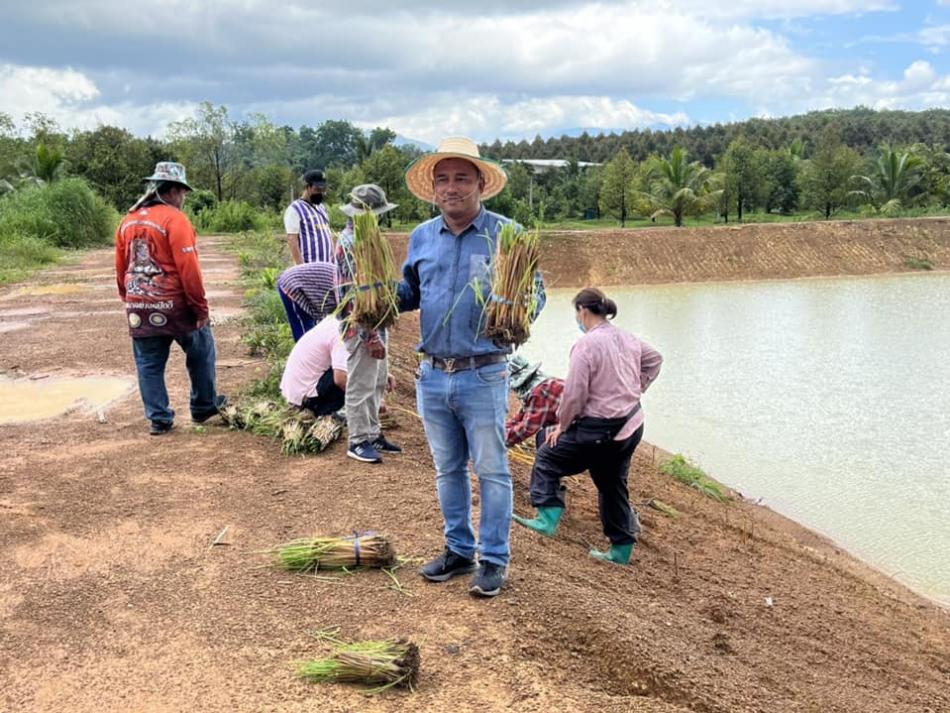 ปลูกหญ้าแฝกริมสระ ม.2 [28 มิถุนายน 2565]