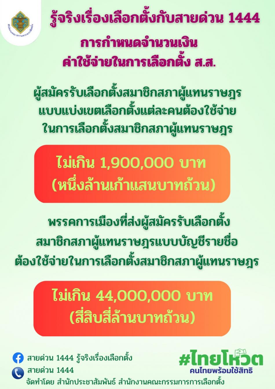 การกำหนดจำนวนเงินค่าใช้จ่ายในการเลือกตั้ง ส.ส. [29 มีนาคม 2566]