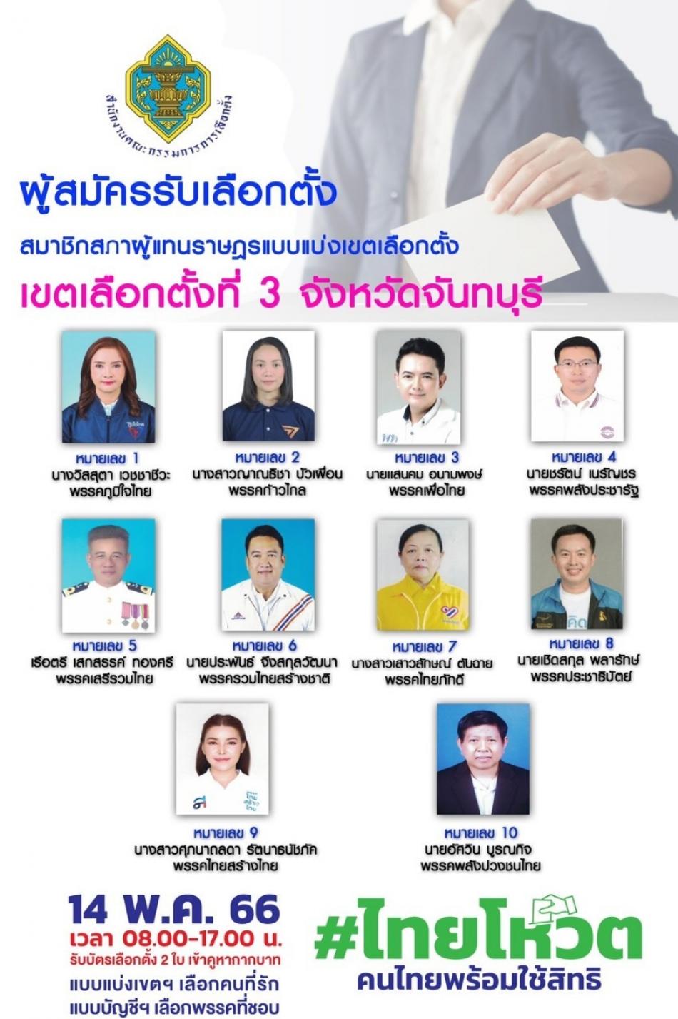 ผู้สมัครรับเลือกตั้งเป็นสมาชิกสภาผู้แทนราษฎร แบบแบ่งเขตเลือกตั้ง เขตเลือกตั้งที่ 3 จังหวัดจันทบุรี [17 เมษายน 2566]